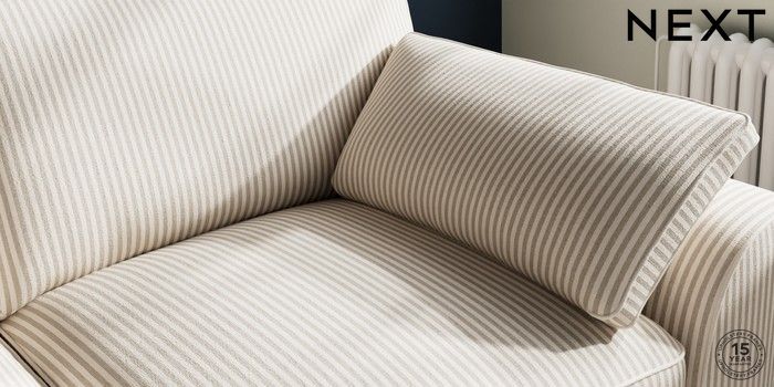 7.3.1 Buy Stamford Grand Relaxed Sit 3 Seater Sofa Chenille Stripe Natural Large Square Angle - Chrome Metal from the Seasons online shop Click here to use our website with more accessibility support, for example screen readers