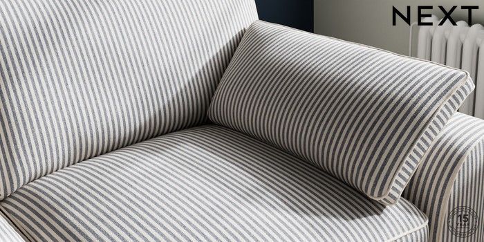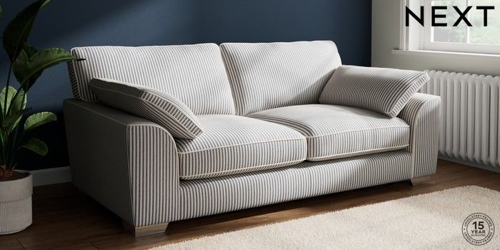 7.3.1 Buy Stamford Grand Relaxed Sit 3 Seater Sofa Chenille Stripe Slate Blue Large Square Angle - Chrome Metal from the Seasons online shop Click here to use our website with more accessibility support, for example screen readers