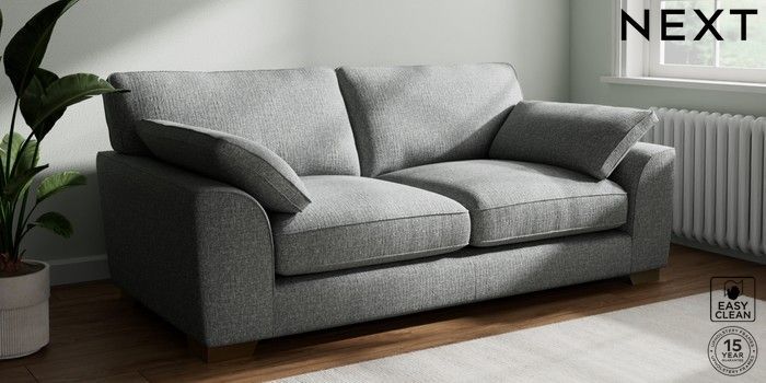 7.3.1 Buy Stamford Grand Relaxed Sit 3 Seater Sofa Chunky Boucle Easy Clean Mid Grey Large Square Angle - Brushed Brass from the Seasons online shop Click here to use our website with more accessibility support, for example screen readers