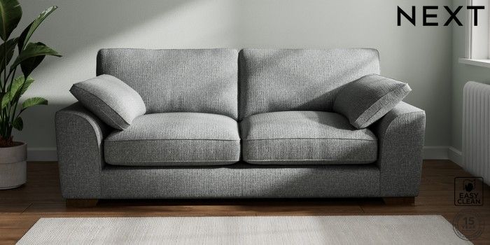 7.3.1 Buy Stamford Grand Relaxed Sit 3 Seater Sofa Chunky Boucle Easy Clean Mid Grey Large Square Angle - Mid from the Seasons online shop Click here to use our website with more accessibility support, for example screen readers