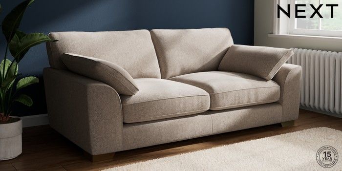 7.3.1 Buy Stamford Grand Relaxed Sit 3 Seater Sofa Chunky Chenille Light Dove Large Square Angle - Brushed Brass from the Seasons online shop Click here to use our website with more accessibility support, for example screen readers