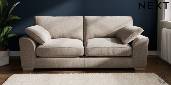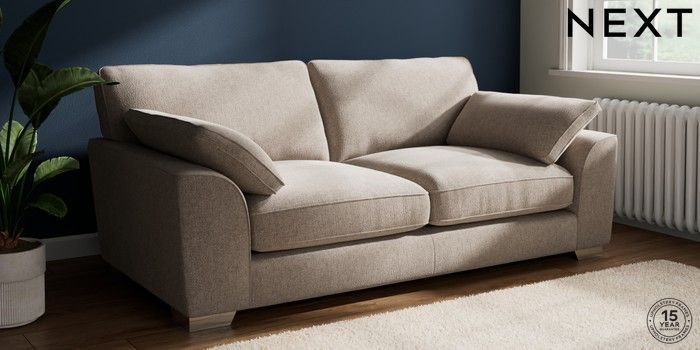 7.3.1 Buy Stamford Grand Relaxed Sit 3 Seater Sofa Chunky Chenille Light Dove Large Square Angle - Chrome Metal from the Seasons online shop Click here to use our website with more accessibility support, for example screen readers