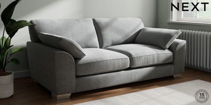 7.3.1 Buy Stamford Grand Relaxed Sit 3 Seater Sofa Chunky Marl Mid Grey Large Square Angle - Chrome Metal from the Seasons online shop Click here to use our website with more accessibility support, for example screen readers