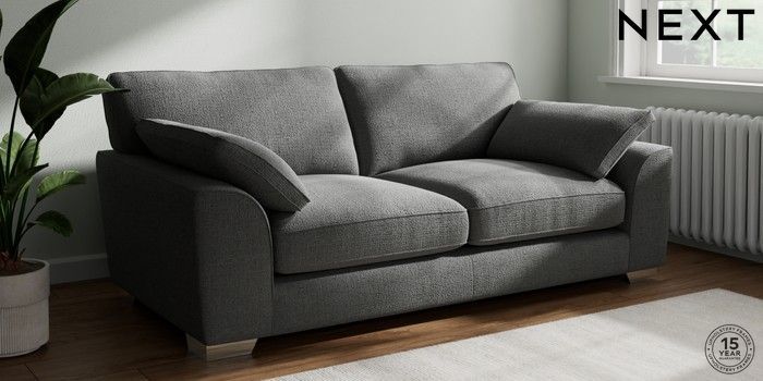 7.3.1 Buy Stamford Grand Relaxed Sit 3 Seater Sofa Chunky Texture Dark Grey Large Square Angle - Chrome Metal from the Seasons online shop Click here to use our website with more accessibility support, for example screen readers