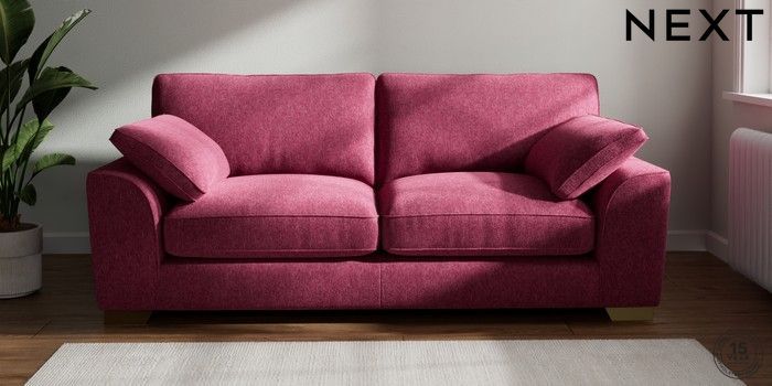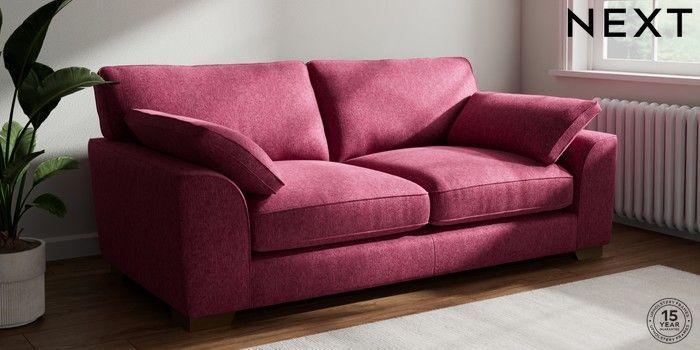 7.3.1 Buy Stamford Grand Relaxed Sit 3 Seater Sofa Cotswold Chenille Dark Raspberry Pink Large Square Angle - Brushed Brass from the Seasons online shop Click here to use our website with more accessibility support, for example screen readers