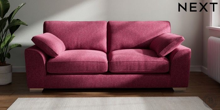 7.3.1 Buy Stamford Grand Relaxed Sit 3 Seater Sofa Cotswold Chenille Dark Raspberry Pink Large Square Angle - Chrome Metal from the Seasons online shop Click here to use our website with more accessibility support, for example screen readers