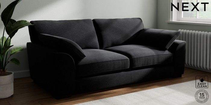 7.3.1 Buy Stamford Grand Relaxed Sit 3 Seater Sofa Fine Chenille Easy Clean Black Large Square Angle - Dark from the Seasons online shop Click here to use our website with more accessibility support, for example screen readers