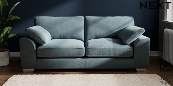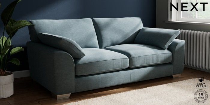 7.3.1 Buy Stamford Grand Relaxed Sit 3 Seater Sofa Fine Chenille Easy Clean Mid Blue Large Square Angle - Chrome Metal from the Seasons online shop Click here to use our website with more accessibility support, for example screen readers