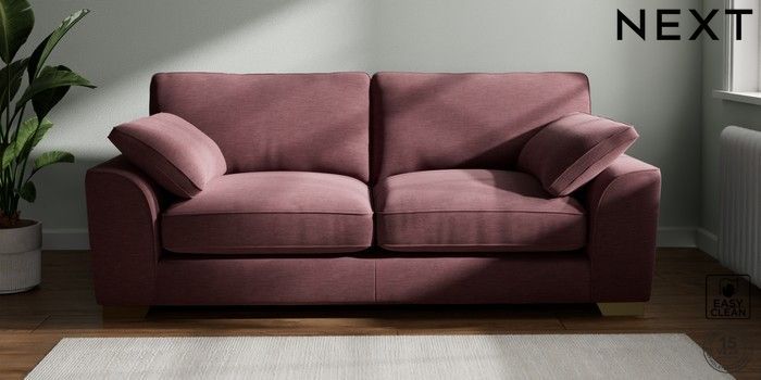 7.3.1 Buy Stamford Grand Relaxed Sit 3 Seater Sofa Fine Chenille Easy Clean Mid Mulberry Purple Large Square Angle - Brushed Brass from the Seasons online shop Click here to use our website with more accessibility support, for example screen readers