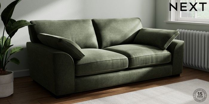 7.3.1 Buy Stamford Grand Relaxed Sit 3 Seater Sofa Luxe Chenille Mid Green Large Square Angle - Dark from the Seasons online shop Click here to use our website with more accessibility support, for example screen readers