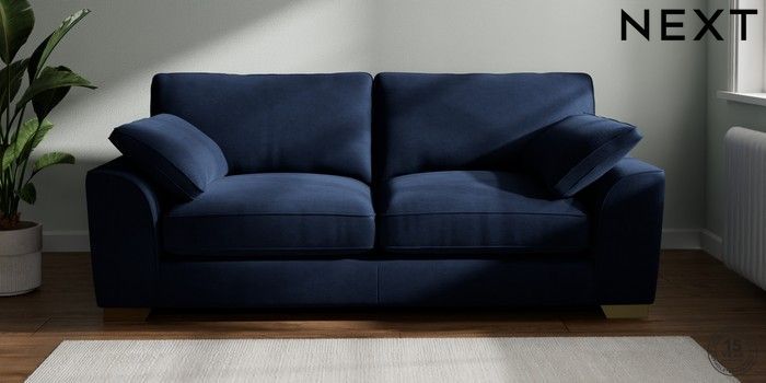 7.3.1 Buy Stamford Grand Relaxed Sit 3 Seater Sofa Luxe Chenille Navy Blue Large Square Angle - Brushed Brass from the Seasons online shop Click here to use our website with more accessibility support, for example screen readers