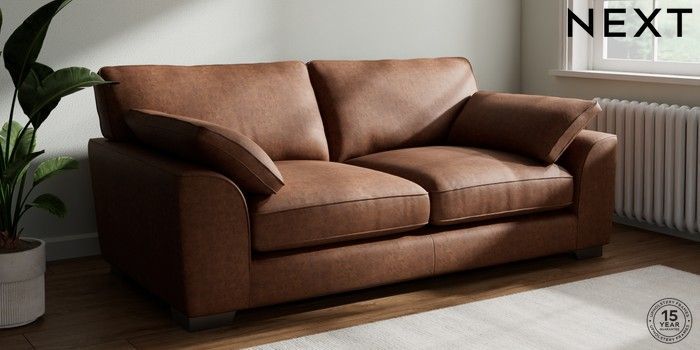 7.3.1 Buy Stamford Grand Relaxed Sit 3 Seater Sofa Monza Faux Leather Easy Clean Chestnut Brown Large Square Angle - Gunmetal from the Seasons online shop