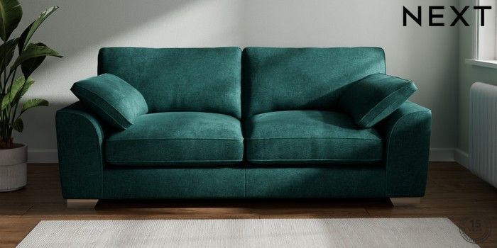 7.3.1 Buy Stamford Grand Relaxed Sit 3 Seater Sofa Plush Chenille Dark Teal Green Large Square Angle - Chrome Metal from the Seasons online shop Click here to use our website with more accessibility support, for example screen readers