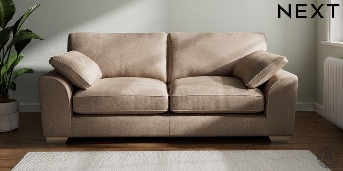 7.3.1 Buy Stamford Grand Relaxed Sit 3 Seater Sofa Plush Chenille Mid Natural Large Square Angle - Chrome Metal from the Seasons online shop Click here to use our website with more accessibility support, for example screen readers