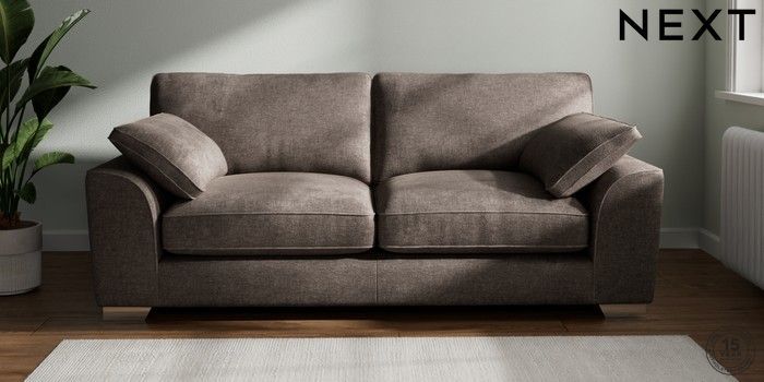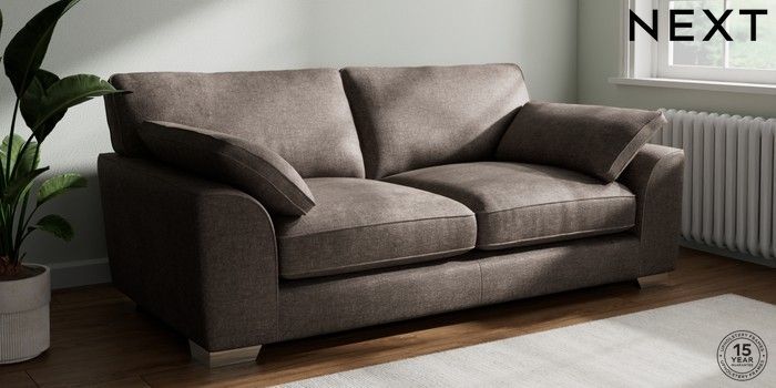 7.3.1 Buy Stamford Grand Relaxed Sit 3 Seater Sofa Plush Chenille Mink Brown Large Square Angle - Chrome Metal from the Seasons online shop Click here to use our website with more accessibility support, for example screen readers