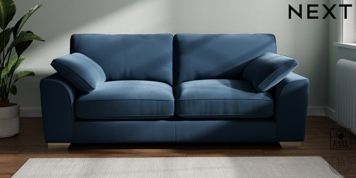 7.3.1 Buy Stamford Grand Relaxed Sit 3 Seater Sofa Plush Velvet Easy Clean Airforce Blue Large Square Angle - Chrome Metal from the Seasons online shop