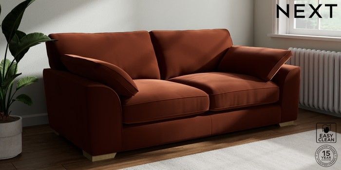 7.3.1 Buy Stamford Grand Relaxed Sit 3 Seater Sofa Plush Velvet Easy Clean Ginger Orange Large Square Angle - Light from the Seasons online shop Click here to use our website with more accessibility support, for example screen readers
