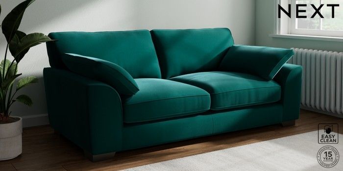7.3.1 Buy Stamford Grand Relaxed Sit 3 Seater Sofa Plush Velvet Easy Clean Juniper Green Large Square Angle - Gunmetal from the Seasons online shop