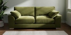 7.3.1 Buy Stamford Grand Relaxed Sit 3 Seater Sofa Plush Velvet Easy Clean Mid Olive Green Large Square Angle - Chrome Metal from the Seasons online shop