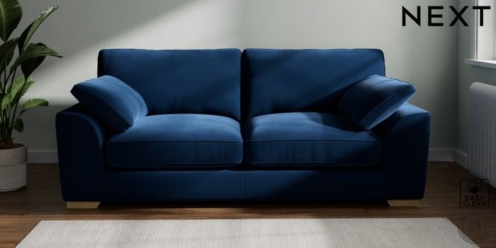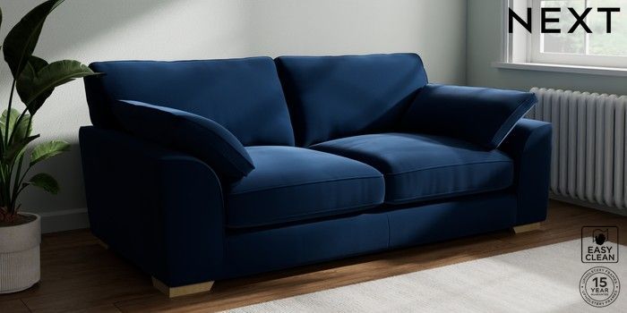 7.3.1 Buy Stamford Grand Relaxed Sit 3 Seater Sofa Plush Velvet Easy Clean Navy Blue Large Square Angle - Light from the Seasons online shop Click here to use our website with more accessibility support, for example screen readers