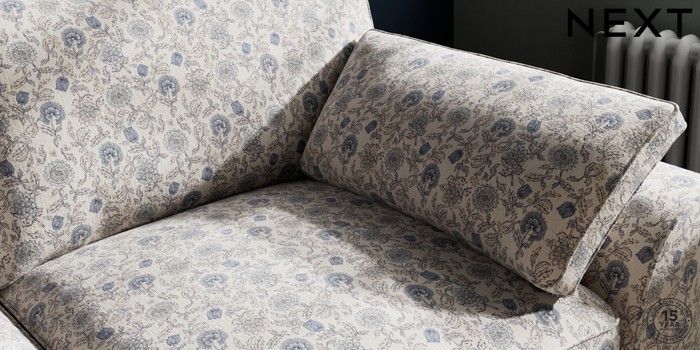 7.3.1 Buy Stamford Grand Relaxed Sit 3 Seater Sofa Relaxed Linen Look Print Woodblock Floral Blue Large Square Angle - Chrome Metal from the Seasons online shop
