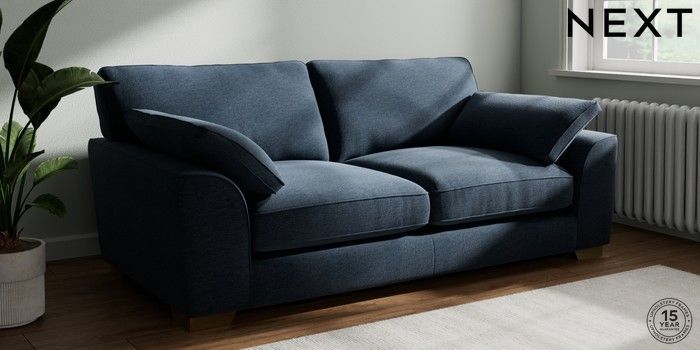 7.3.1 Buy Stamford Grand Relaxed Sit 3 Seater Sofa Ripple Chenille Dark Blue Large Square Angle - Brushed Brass from the Seasons online shop Click here to use our website with more accessibility support, for example screen readers