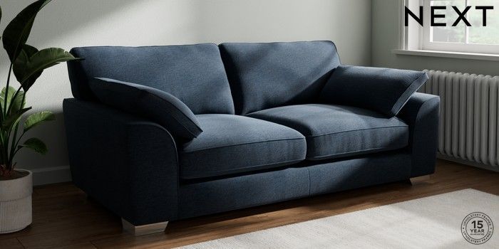 7.3.1 Buy Stamford Grand Relaxed Sit 3 Seater Sofa Ripple Chenille Dark Blue Large Square Angle - Chrome Metal from the Seasons online shop Click here to use our website with more accessibility support, for example screen readers