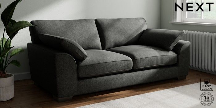 7.3.1 Buy Stamford Grand Relaxed Sit 3 Seater Sofa Tweedy Blend Easy Clean Charcoal Grey Large Square Angle - Gunmetal from the Seasons online shop