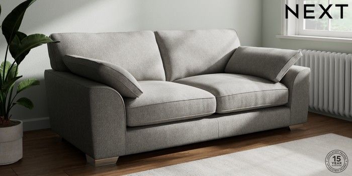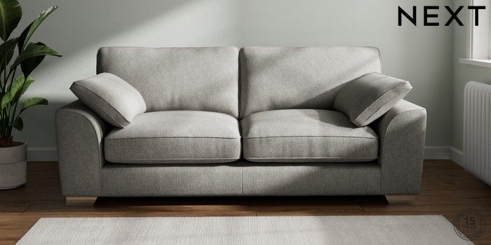 7.3.1 Buy Stamford Grand Relaxed Sit 3 Seater Sofa Tweedy Chenille Mid Grey Large Square Angle - Chrome Metal from the Seasons online shop Click here to use our website with more accessibility support, for example screen readers