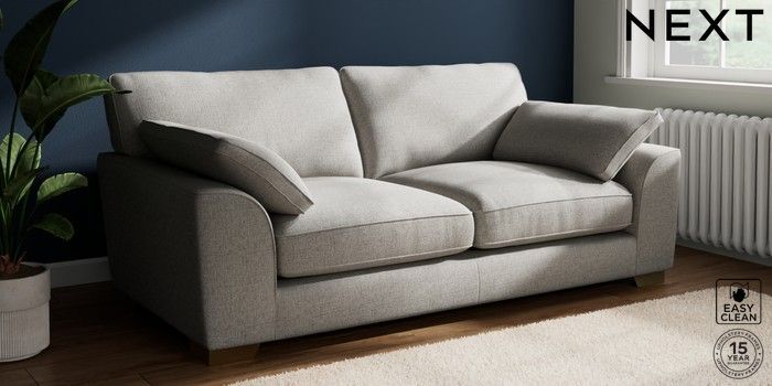 7.3.1 Buy Stamford Grand Relaxed Sit 3 Seater Sofa Woven Chenille Easy Clean Light Grey Large Square Angle - Brushed Brass from the Seasons online shop Click here to use our website with more accessibility support, for example screen readers