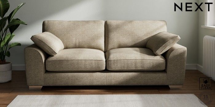 7.3.1 Buy Stamford Grand Relaxed Sit 3 Seater Sofa Woven Chenille Easy Clean Mid Natural Large Square Angle - Chrome Metal from the Seasons online shop Click here to use our website with more accessibility support, for example screen readers