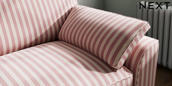 7.3.1 Buy Stamford Grand Relaxed Sit 4 Seater Sofa Bold Chenille Stripe Dark Pink Large Square Angle - Chrome Metal from the Seasons online shop Click here to use our website with more accessibility support, for example screen readers