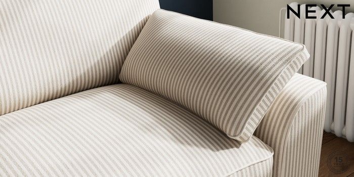 7.3.1 Buy Stamford Grand Relaxed Sit 4 Seater Sofa Chenille Stripe Natural Large Square Angle - Gunmetal from the Seasons online shop Click here to use our website with more accessibility support, for example screen readers