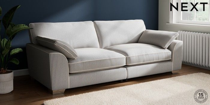 7.3.1 Buy Stamford Grand Relaxed Sit 4 Seater Sofa Chenille Stripe Slate Blue Large Square Angle - Chrome Metal from the Seasons online shop Click here to use our website with more accessibility support, for example screen readers