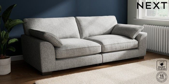 7.3.1 Buy Stamford Grand Relaxed Sit 4 Seater Sofa Chunky Boucle Easy Clean Light Grey Large Square Angle - Gunmetal from the Seasons online shop Click here to use our website with more accessibility support, for example screen readers