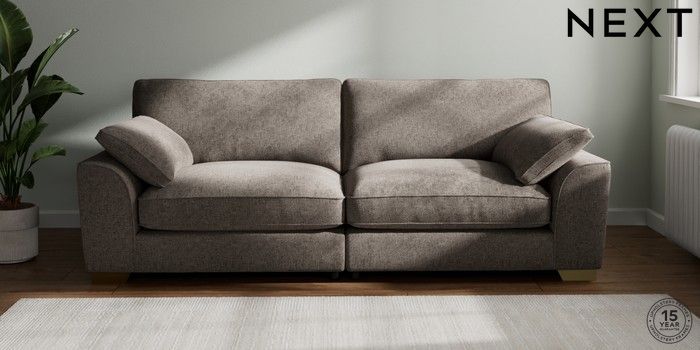 7.3.1 Buy Stamford Grand Relaxed Sit 4 Seater Sofa Chunky Chenille Mink Brown Large Square Angle - Brushed Brass from the Seasons online shop Click here to use our website with more accessibility support, for example screen readers