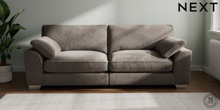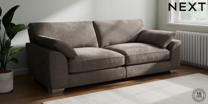7.3.1 Buy Stamford Grand Relaxed Sit 4 Seater Sofa Chunky Chenille Mink Brown Large Square Angle - Chrome Metal from the Seasons online shop Click here to use our website with more accessibility support, for example screen readers