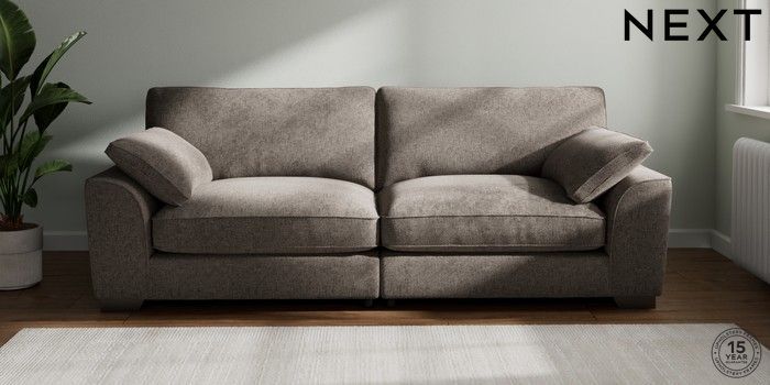 7.3.1 Buy Stamford Grand Relaxed Sit 4 Seater Sofa Chunky Chenille Mink Brown Large Square Angle - Gunmetal from the Seasons online shop Click here to use our website with more accessibility support, for example screen readers
