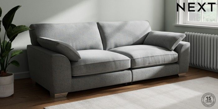 7.3.1 Buy Stamford Grand Relaxed Sit 4 Seater Sofa Chunky Marl Mid Grey Large Square Angle - Chrome Metal from the Seasons online shop Click here to use our website with more accessibility support, for example screen readers