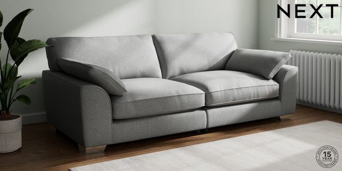 7.3.1 Buy Stamford Grand Relaxed Sit 4 Seater Sofa Chunky Weave Mid Grey Large Square Angle - Chrome Metal from the Seasons online shop Click here to use our website with more accessibility support, for example screen readers