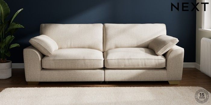 7.3.1 Buy Stamford Grand Relaxed Sit 4 Seater Sofa Chunky Weave Mid Natural Large Square Angle - Brushed Brass from the Seasons online shop Click here to use our website with more accessibility support, for example screen readers