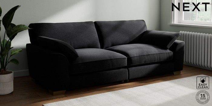 7.3.1 Buy Stamford Grand Relaxed Sit 4 Seater Sofa Fine Chenille Easy Clean Black Large Square Angle - Brushed Brass from the Seasons online shop Click here to use our website with more accessibility support, for example screen readers