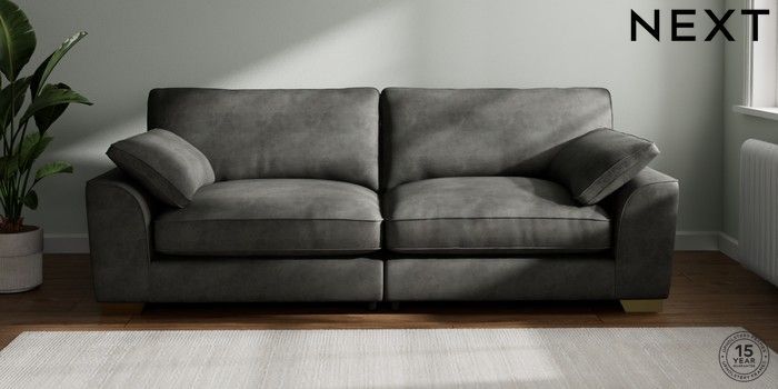 7.3.1 Buy Stamford Grand Relaxed Sit 4 Seater Sofa Monza Faux Leather Easy Clean Dark Grey Large Square Angle - Brushed Brass from the Seasons online shop Click here to use our website with more accessibility support, for example screen readers