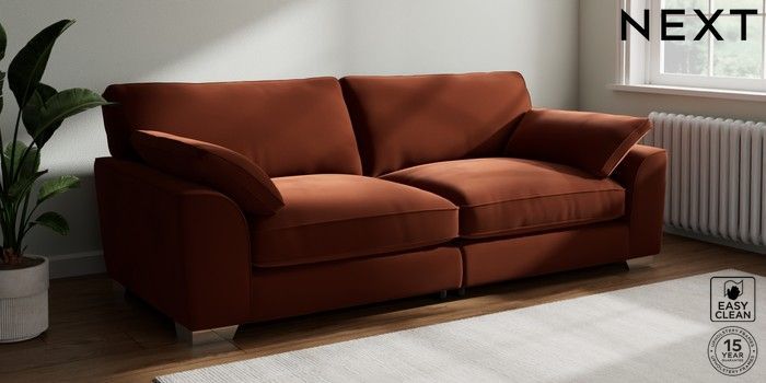 7.3.1 Buy Stamford Grand Relaxed Sit 4 Seater Sofa Plush Velvet Easy Clean Ginger Orange Large Square Angle - Chrome Metal from the Seasons online shop