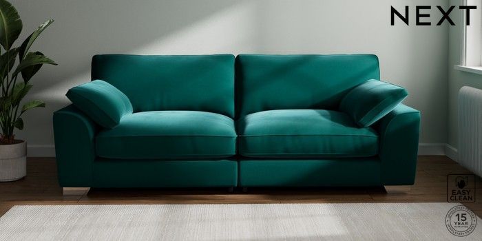 7.3.1 Buy Stamford Grand Relaxed Sit 4 Seater Sofa Plush Velvet Easy Clean Juniper Green Large Square Angle - Chrome Metal from the Seasons online shop