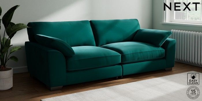 7.3.1 Buy Stamford Grand Relaxed Sit 4 Seater Sofa Plush Velvet Easy Clean Juniper Green Large Square Angle - Gunmetal from the Seasons online shop