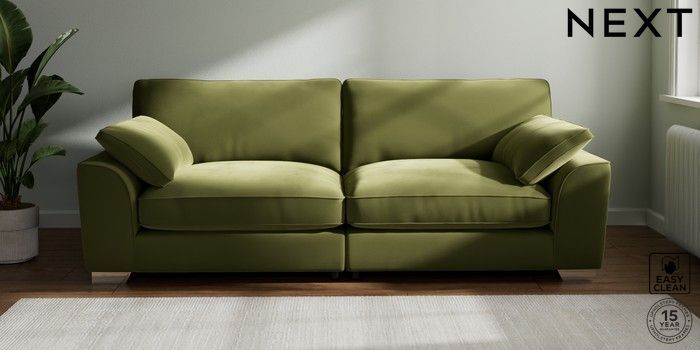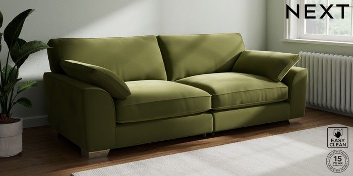 7.3.1 Buy Stamford Grand Relaxed Sit 4 Seater Sofa Plush Velvet Easy Clean Mid Olive Green Large Square Angle - Chrome Metal from the Seasons online shop