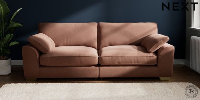 7.3.1 Buy Stamford Grand Relaxed Sit 4 Seater Sofa Relaxed Linen Look Light Rust Brown Large Square Angle - Brushed Brass from the Seasons online shop Click here to use our website with more accessibility support, for example screen readers