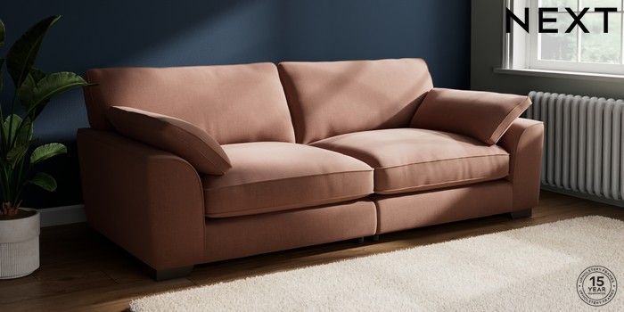 7.3.1 Buy Stamford Grand Relaxed Sit 4 Seater Sofa Relaxed Linen Look Light Rust Brown Large Square Angle - Gunmetal from the Seasons online shop Click here to use our website with more accessibility support, for example screen readers