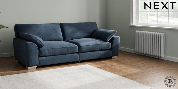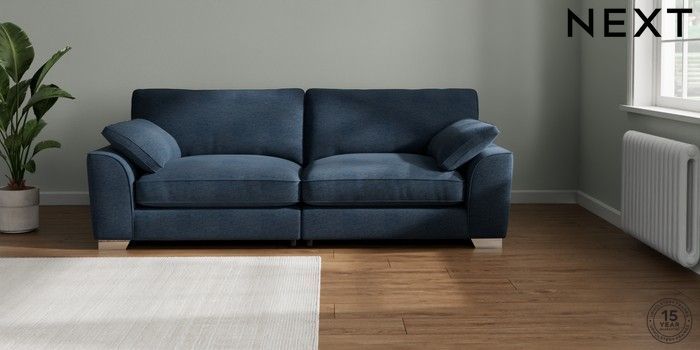 7.3.1 Buy Stamford Grand Relaxed Sit 4 Seater Sofa Ripple Chenille Dark Blue Large Square Angle - Chrome Metal from the Seasons online shop Click here to use our website with more accessibility support, for example screen readers